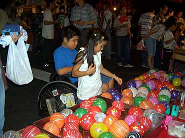 7月14日(金)祇園祭宵々々山。町はすでに祇園祭一色!明日明後日は土曜日日曜日の宵山宵々山ということで、史上最高の人出が予想されており、とうてい車椅子ではいけないだろうと、夕方から夜店に繰り出しました。