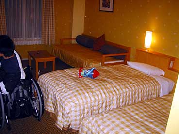 新幹線往復とホテル二泊でなんと29000円(こども19000円)!!という値段は、ぼろぼろのホテルに泊まってもあきらめのつく値段なのですが、なんと文句のつけようのないすばらしいホテルでした。格式重視したたいそうなホテルではなく、ファミリーが気軽に楽しく便利に使うことを目的にしたすてきなホテルでした。室内も4ベッドルームで、お風呂も洗い場付き、トイレ洗面所別、加湿器あり、24時間のコンビニあり、ディズニーショップあり。TDRには15分くらいバスで移動が必要ですが、10分ごとに無料バスが走っていて、何の不自由もありませんでした。