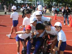 4年からは車いすでの参加。毎回、先生方の協力で劇的に演出していただき、友情と愛情を感じながら完走しました。