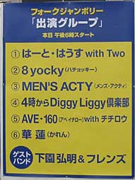出演順はなんと「トリ!」 プロデューサーにきくと 「テープ、なかなか いい雰囲気でしたよ!」 やて! |