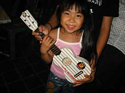 これが最優秀バンドに あたえられる賞品! しかし、ウクレレ1本もらって 4人でどうわけるの?? |
