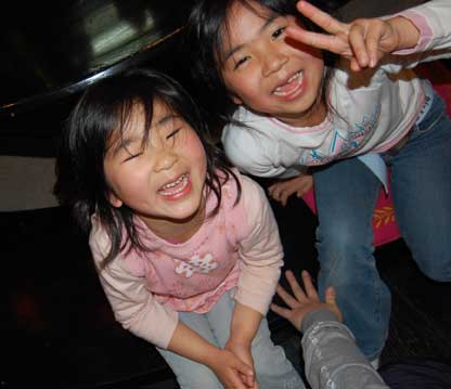 春休みを利用して、東京から和馬と真綾のまたいとこ「茉衣里(4歳)」がやってきた。五条縄手の旅館に食事付きで泊まっていたので、食事後、まいりの両親・しんご・ちかのお気に入り「居酒屋ももじろう」で合流!ママの従兄弟たちがあつまって大パーティーになりました。