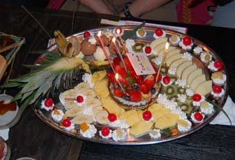ちょうどその日、ママの従妹・佳奈のフィアンセの淳一くんの誕生日だったので、ももじろうにケーキの持ち込みをお願いしたところ、そのケーキを預かって加工して下の画像のようなすばらしいデコレーション!