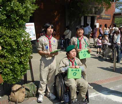 4月29日、ボーイスカウト京都第24団イーグル班は、動物園前で緑化募金活動を行った。