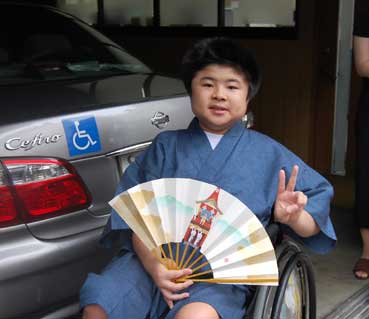 といっても、和馬は車椅子なので特別に甚平さん(じんべさん・「い」がなくなる発音がミソ)で登校しました。
