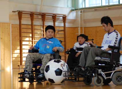 電動車椅子サッカーは、映像を流し、実際に車椅子、ボールにさわってもらいました。