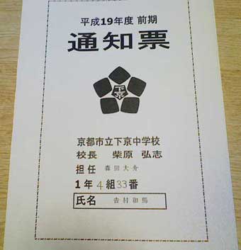 それにしてもこの通知票。なんともいえないレイアウト。校長の名前が生徒より担任よりかなり大きいのが気になって仕方がありません。「ええ印刷屋さんしょうかいしましょか?!」っていいたくなりました!