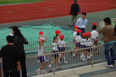 10時頃と言うことだったので、間に合うつもりだったのだが、去年行ったサブグランドだと思いこんで向かったところ、今年は反対側のメイングランドだったようで、遠回りになってしまい。会場に入ったら、ちょうど二年女子はドンドンゴールして行っているタイミング。