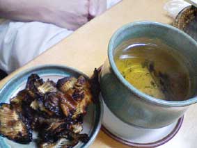 ここのひれ酒はひれがザクザク! まるでほうじ茶のような色!! |