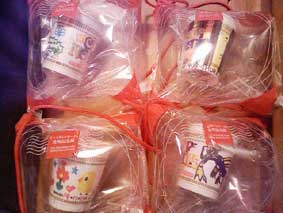 300円でカップヌードルのカップを買い、マジックで絵をかいて自分自身の世界に一つしかないカップヌードルを作ります。絵が描けたら、中身を詰める行程に。