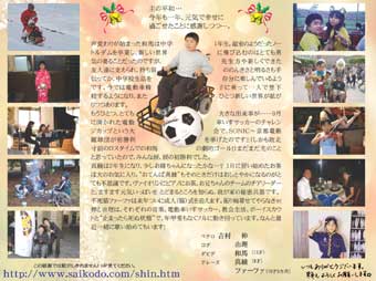 発送の折りに大変なことが発覚しました。先日、家のパソコンが潰れたため住所録が最終バックアップの2006年9月まで戻ってしまっているのです。もし今年届かなかった人!ご連絡ください。年賀状として出させていただきます!