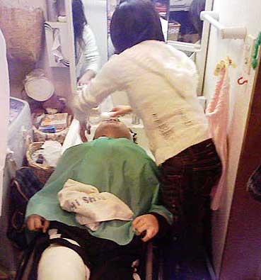 洗髪は、若いママ美容師の「てらくみ」が来てくれました。