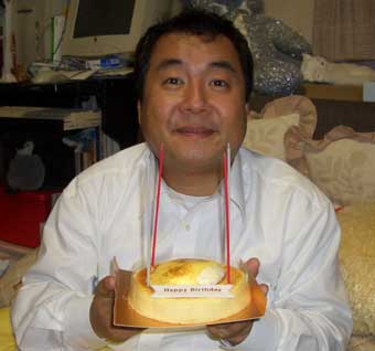 出演後、楽屋にかえると、 なんとパパのために 特大ケーキのサプライズ!! メンバーの皆さん!ありがとう! |