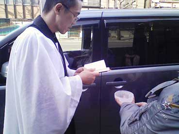 聖別した聖水を車のいたるところにかけて清めてもらって、大変ありがたいものでした。
