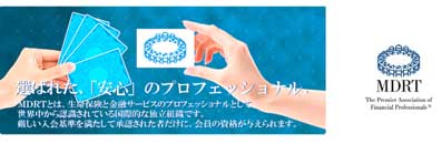 Million Dollar Round Table(MDRT)とは世界78の国と地域、35,662名(2007年8月現在)の会員を有する、卓越した生命保険と金融サービスの専門家による国際的かつ独立した組織です。