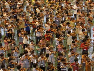 このすごい集団! 参加者はバイオリンだけで 約1000名 |