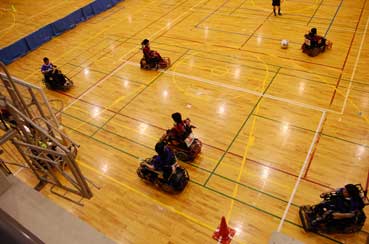 いつもやってる電動車いすサッカーは時速6キロまでと決まっているのですが、世界ルールでは10キロ。ワールドカップも10キロでした。その10キロで試験的にやってみようという大会で、残念ながら1部リーグしか出場権はなく、出場できませんでしたが、見学に行きました。