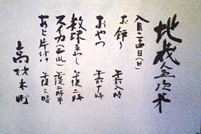 町屋の軒に地蔵盆の予定が貼り出されました。