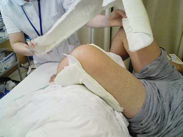 一度ギプスを外して、もう少し短いギプスを巻き直してもらいました。足先まで包まれていたのが、足首までになって、ちょっと楽そうになりました。