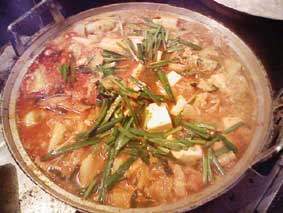 一日目の夕食は激辛モツ鍋! 気温はかなり冷え込んでいるので ピッタリ!! |
