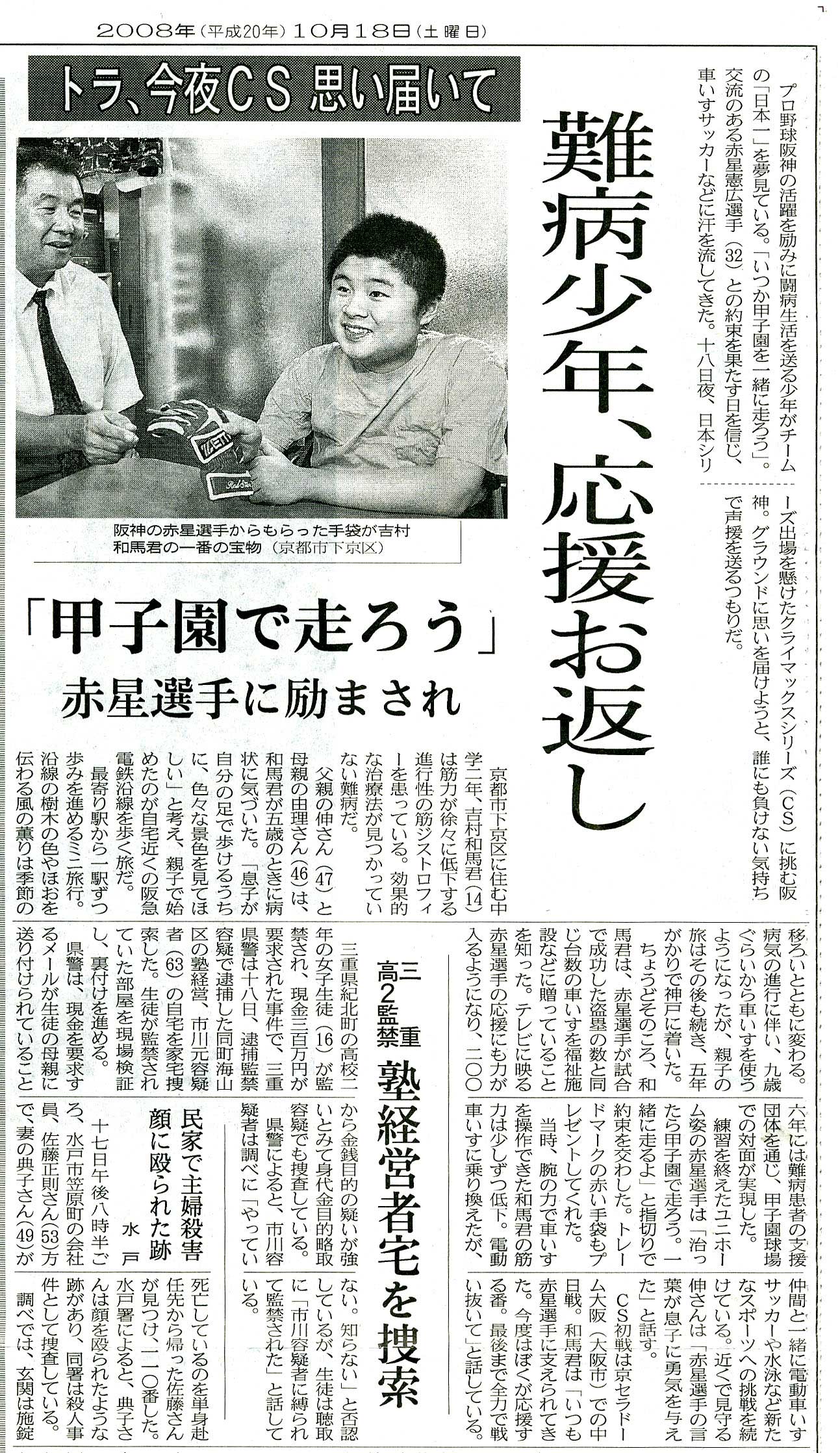 どうやら土曜日の夕刊に和馬の記事が掲載されるよう。いっときますが、サッカーネタではなく、CSにあわせた阪神ネタです!