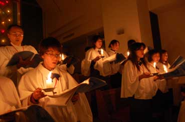 クリスマスイブは教会で蝋燭礼拝が行われます。