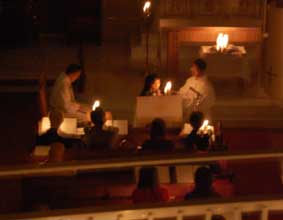 日課と黙想と聖歌でつづる晩祷でとても厳かで一般の方もたくさん見えます。