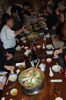 新旧合同委員会のあとは 楽しい鍋パーティー! 河道屋の養老鍋は絶品! |
