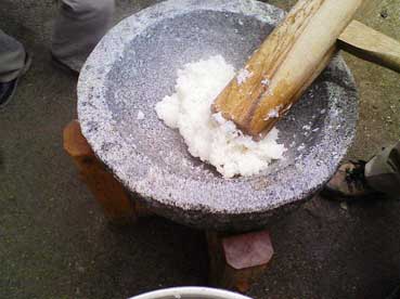 駅伝の奉仕が終わって教会へ帰ると、ちょっと季節はずれの餅つき大会でした。