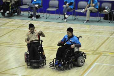 ルールは、バスケットボールと同じ大きさのコートで、32・5センチのボールを幅6メートルのゴールに入れる。1チーム4人。車いす前部には、長さ約30センチのフットガードと呼ばれるボールをけるための金属が取り付けられている。