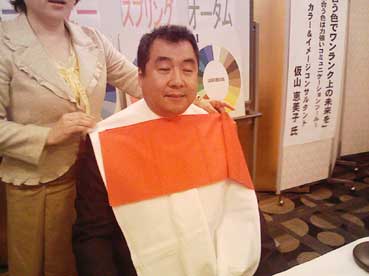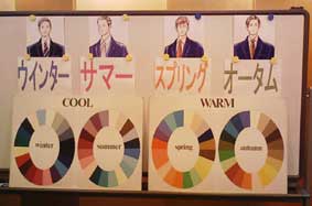 春夏秋冬の四つの色を胸の前に置き、どの色が顔に合っているかを判定!