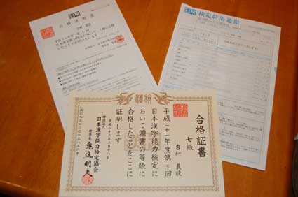 真綾ちゃん漢字検定7級!