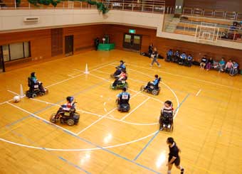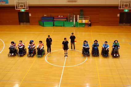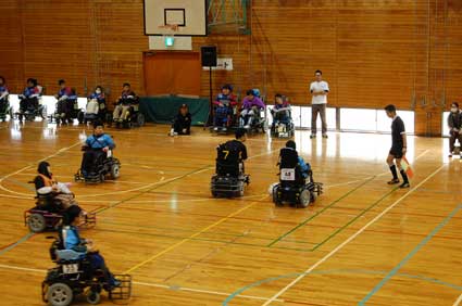 午前中は地元の小学生サッカーチームを相手に講習会。電動車椅子サッカーを理解してもらうためにデモ競技をしました。
