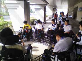 このままでは予選大会に出場出来ないということで、練習後、芦生にキャンプに出かける予定を変えて、慌てて豊中の車椅子業者・フジドライブに走りました。