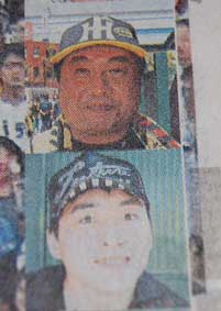 席は抽選で決定! 和馬はレフト席で 楽天の応援団の真ん前! 横にはアラブ人風のまっすん! |