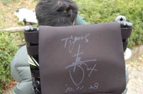 和馬は体の一部である 車椅子の背もたれ。 これでいつも桧山さんと一緒♪ |