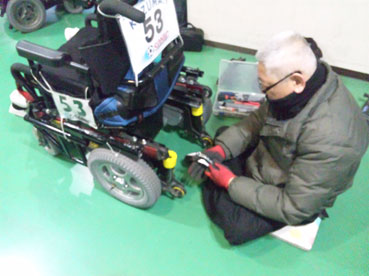 みんなが体育をやっている時間帯に、見学しているだけでなく、電動車椅子サッカーの練習をさせていただいているのです。