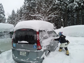 山へ上がっている内に大雪が 車の上こんなに!! |