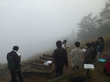 毎年のように朝4時半にマリア教会を出発して大文字山に登って上で礼拝をしました。