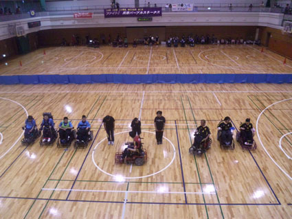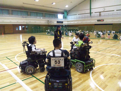 いつもと違ってぶつかったら大変なことになるのですが、そこはさすがに一流選手達。絶妙なコントロールで見たこともない速いスピードの電動車椅子を操ります。