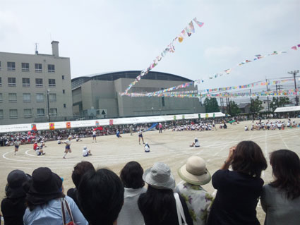 思い起こせば11年前。和馬の初めての運動会にこのノートルダム学院小学校の運動会に行ったとき、この1000人の大入場行進にカルチャーショックを受けました。なにせ自分の小学校時代も200名くらいの全校生徒、和馬の幼稚園も50人くらいしかいなかったので、あんなにたくさんの運動会は始めてでした。