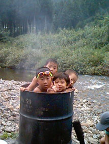 その昔、芦生で一緒に ドラム缶風呂に入る 翔太と和馬 後ろは翔太の弟・駿と翼 |