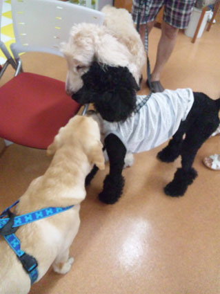 ルフィーちゃんも訓練まで多分一ヶ月くらいになってきて、今のうちにドッグカフェを経験しようと。