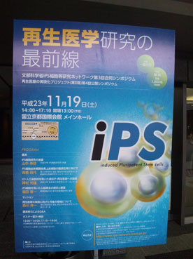 ちょうどこの日の京都新聞の一面、テレビ、ラジオのニュースでもとりあげられていましたが、山中教授の研究が大きく進んでいるようです。