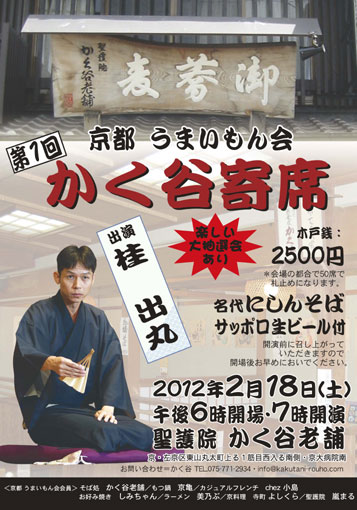 2月18日(土)午後6時より食事、午後7時より寄席/聖護院かく谷