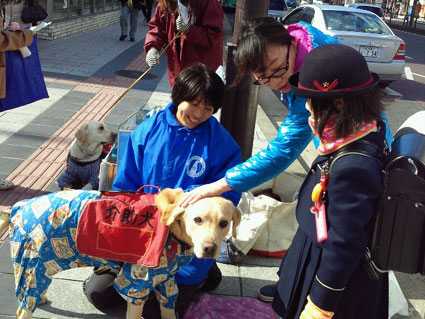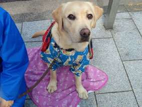 写真は訓練の一環として、デモンストレーション犬を手伝っているところらしいです。