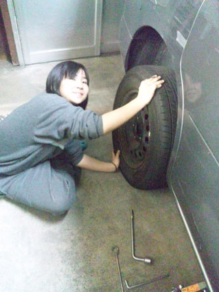 タイヤ交換はいつものように真綾担当!相変わらず「男前」です!