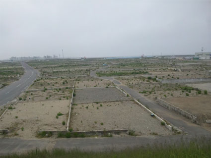 あの恐怖の津波画像の跡地が目の前。元は平和な家族が住んでいた家の境目だけが残る広大な平地。