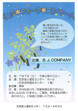 わがB.J.Companyが7月7日(土)にライブをします。
