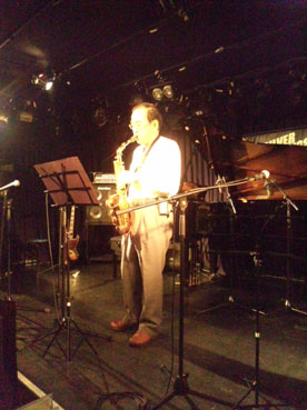これは、以前にも数回出演させていただきましたが、原田佳代子さんというクラリネット奏者のお弟子さんたちの発表会ライブで、その生徒さんの伴奏として、伸のドラムと南兄のベースが呼ばれてお手伝いをしていたのですが、今回は出演者が少々少なく、時間があると言うことで、7月のライブのリハ代わりもかねてB.J.Companyも演奏させていただきました。